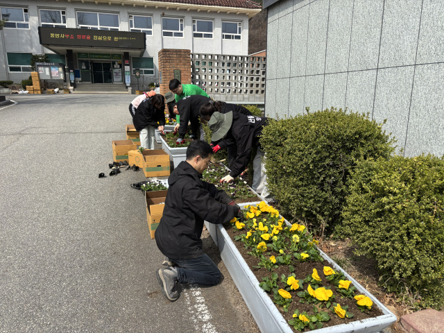 양구 동면사무소 직원들은 지난 3일 제81회 식목일을 맞아 팬지, 비올라 1,000그루를 임당리 일원에 식재하고, 주민 이용이 잦은 등산로를 중심으로 고사목 제거, 가지치기 등 환경정비를 실시했다.양구 동면사무소 직원들은 지난 3일 제81회 식목일을 맞아 팬지, 비올라 1,000그루를 임당리 일원에 식재하고, 주민 이용이 잦은 등산로를 중심으로 고사목 제거, 가지치기 등 환경정비를 실시했다.양구 동면사무소 직원들은 지난 3일 제81회 식목일을 맞아 팬지, 비올라 1,000그루를 임당리 일원에 식재하고, 주민 이용이 잦은 등산로를 중심으로 고사목 제거, 가지치기 등 환경정비를 실시했다.