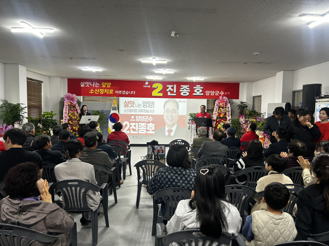 국민의힘 진종호 양양군수 예비후보는 지난 4일 양양읍의 한 건물에서 지지자들을 초청한 가운데 선거사무소 개소식을 갖고 ‘살 맛 나는 양양 소신정치로 이루겠다’며 지지를 호소했다.