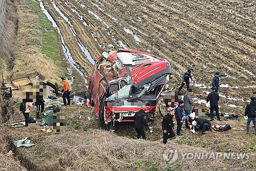 사고 충격으로 버스가 좌측 가드레일을 뚫고 7m 아래 논으로 굴러떨어져 탑승자 24명이 중경상을 입었으며, A씨 역시 다쳤다.