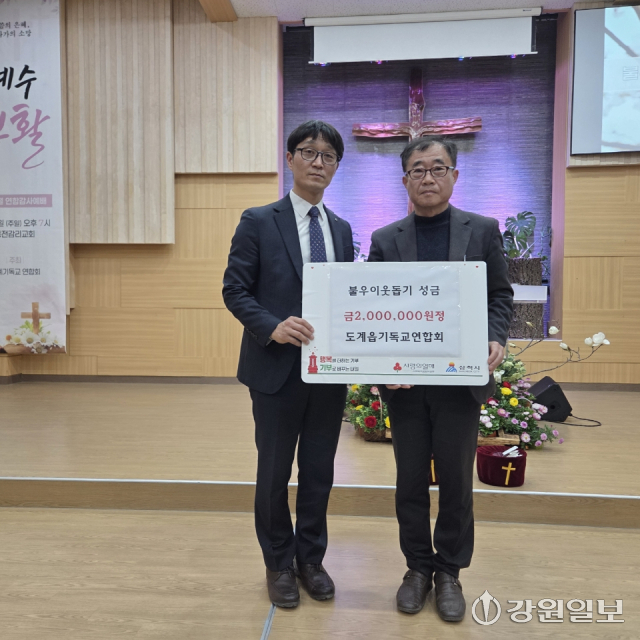 삼척시 도계읍 도계기독교연합회(대표:김영국)는 지난 5일 부활절 도계기독교 연합 예배에서 신도들이 십시일반으로 모은 이웃돕기 성금 200만원을 도계읍에 기탁했다.