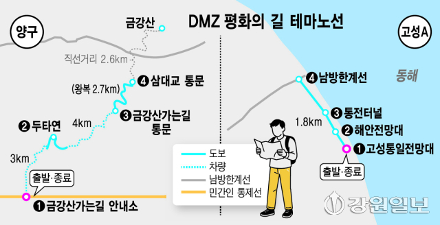강원특별자치도는 17일부터 11월30일까지 비무장지대(DMZ) 접경지역 5개 군에 조성된 ‘디엠지(DMZ) 평화의 길 테마노선’ 6개 코스를 개방한다.