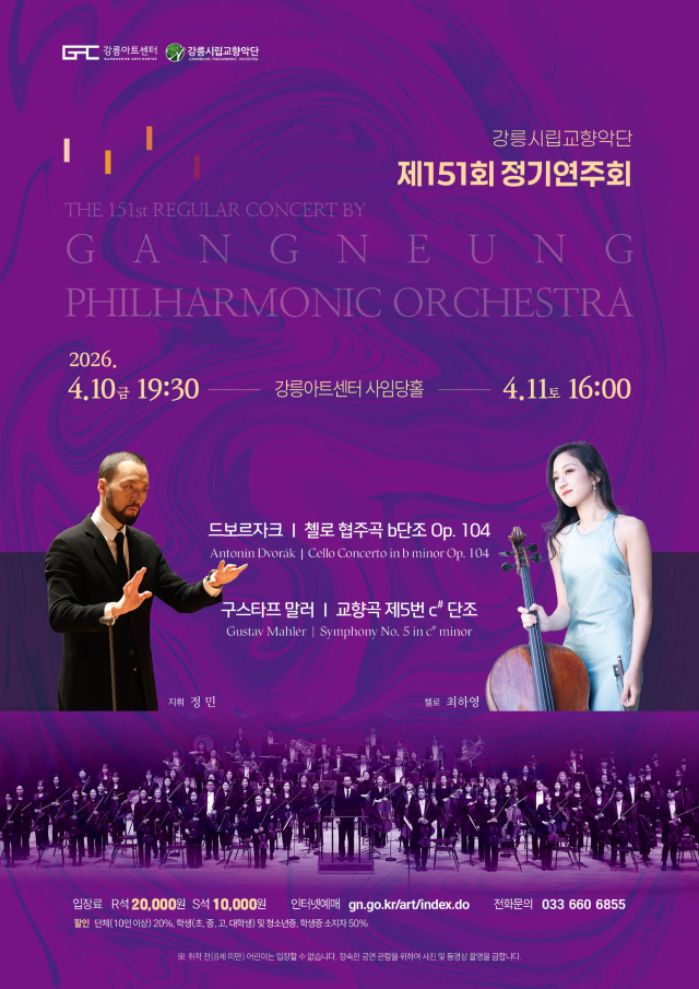 【강릉】강릉시립교향악단은 10일 오후 7시30분과 11일 오후 4시 강릉아트센터 사임당홀에서 제151회 정기연주회를 선보인다.