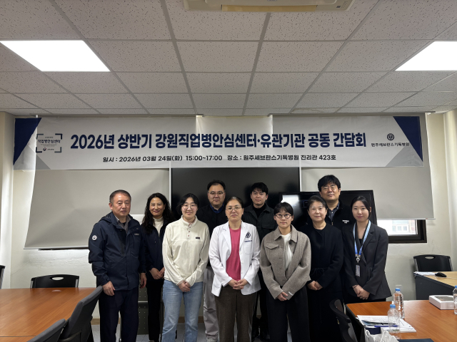 원주세브란스기독병원 강원직업병안심센터(센터장:정경숙)는 최근 병원 내에서 중부지방고용노동부 강원지역의 각 지청 담당자와 산업안전보건공단 관계자 등이 참석한 가운데 유관기관과의 협력 강화를 위한 공동 간담회를 진행했다.