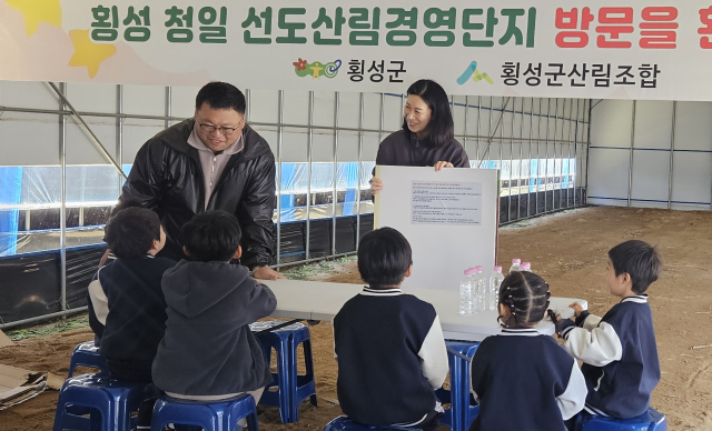 【횡성】횡성군산림조합(조합장:양재관)은 7일 횡성 청일 선도단지에서 갑천초와 청일초 병설유치원 원생들을 대상으로 체험행사를 진행했다.