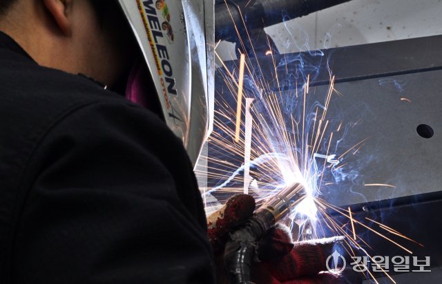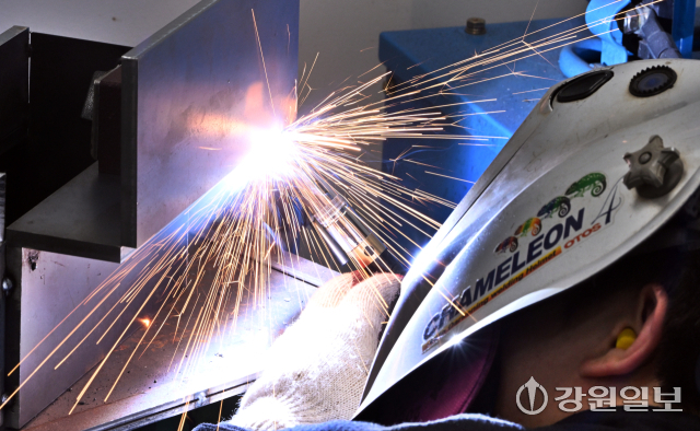 2026년 강원특별자치도 기능경기대회가 지난 6일부터 10일까지 5일간 춘천기계공고를 비롯한 춘천시 일원 7개 경기장에서 열리고 있는 가운데 7일 춘천 기계공고에서 열린 용접 직종 경기에 참가한 선수들이 작업에 열중하고 있다.