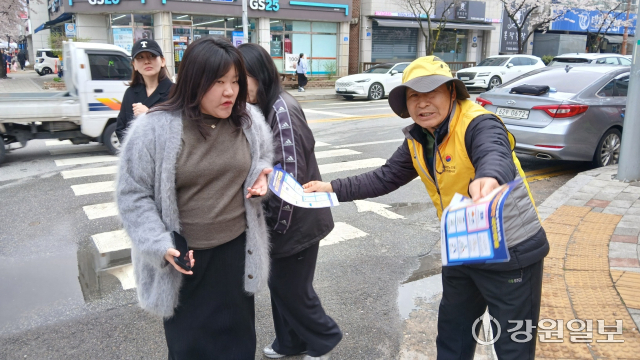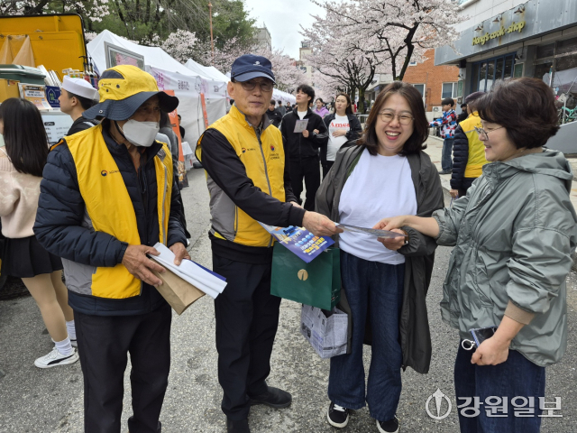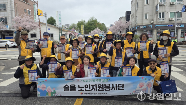 (사)대한노인회강릉시지회(회장: 심재빈) 솔올노인자원봉사단 및 강일 노인자원봉사단은 지난 4일 강릉 솔올블라썸 벚꽃 축제에서 에너지 절약 캠페인 봉사활동을 펼쳤다.