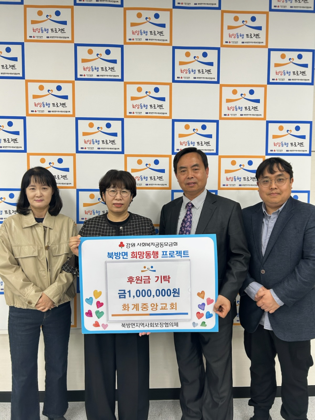 홍천군 화계중앙교회(담임목사:김영규)는 6일 북방면 행정복지센터에서 부활절을 기념하며 소외계층 돕기 성금으로 100만원을 기탁했다.