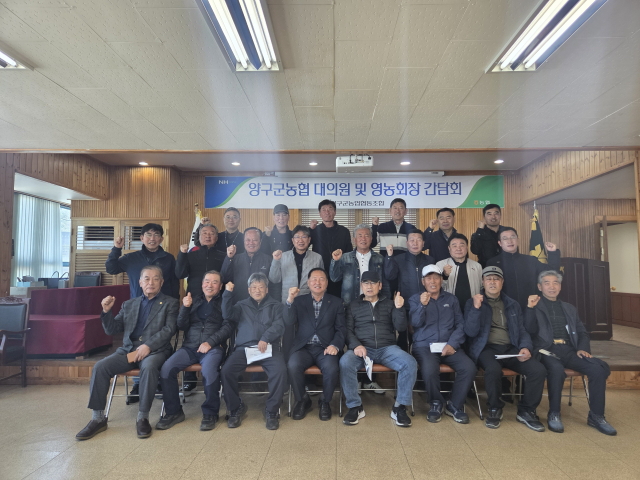 양구군농협(조합장:박성용)은 8일 양구군농협 3층 대회의실에서 대의원 및 영농회장과 간담회를 가졌다. 이날 행사에서는 양구읍지역 19개 영농회를 대상으로 양구군농협 주요사업 보고 및 의견수렴의 시간을 가졌다. 박성용 조합장은 "조합원과의 소통의 장을 마련해 의견 수렴을 지속적으로 하겠으며, 조합원분들께 더 나은 서비스를 제공할 수 있도록 노력하겠다"고 말했다.