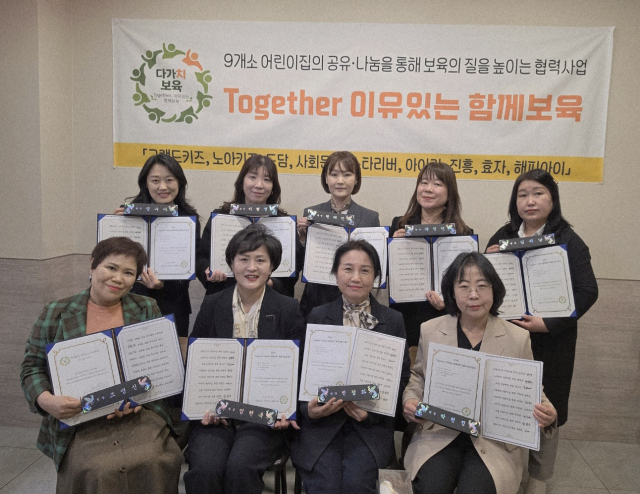 춘천시 국·공립, 민간, 가정 어린이집 9개소는 8일 춘천의 한 음식점에서 'Together 이유있는 함께보육' 발대식을 열었다. 그랜드키즈, 노아키즈, 도담,사회문화, 소양스타리버,아이린,진흥,효자,해피아이 등 9개소 어린이집은 지역사회 연계프로그램, 보육프로그램 개발 등의 협력을 통해 아이들의 보육의 질 향상에 도움을 주고 다양한 프로그램을 제공 할 예정이다.