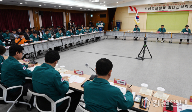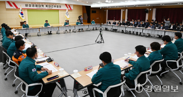 강원특별자치도는 8일 도청 별관대회의실에서 김진태 지사 주재로 중동상황 장기화 대응 점검 및 대책논의를 위한 비상경제대책 확대간부회의를 개최했다.