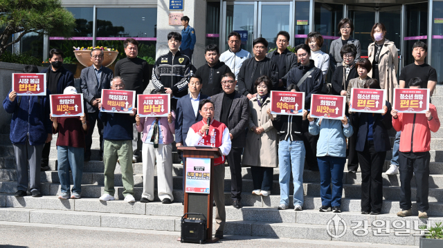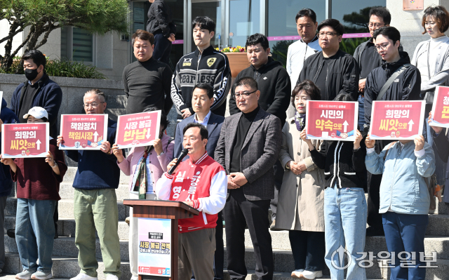 심영섭 국민의힘 강릉시장 예비후보는 8일 강릉시청 앞에서 기자회견을 갖고 "정치인은 시민에게 희생을 요구하기 전에, 스스로가 먼저 내려놓는 책임 정치가 필요하다"이라며 "이번 선거에서 승리해 시장이 된다면 임기 동안 받게 되는 봉급 전액을 시민께 돌려드리겠다"고 밝혔다. 강릉=권태명기자