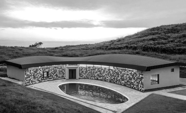 산불로 전소가 된 지 3년이 흐른 지난 4월 초입에 인월사를 찾았습니다. 이전에도 몇 번 이곳을 찾은 적이 있지만, 주변이 온통 불에 탄 채 잘린 검은 그루터기들로 둘러싸여 있어서 일주문 안으로 들어가기가 저어되었습니다. 이번에 이곳을 찾은 것은 잿더미 위에 지은 ‘인월사 담마센터’가 세계건축상 대상을 받았다는 소식을 접했기 때문입니다. 이번에 받은 세계건축상은 현대 건축 담론에 흥미로운 질문을 불러일으킬 수 있는 혁신적이고 주목할 만한 프로젝트를 선정하는 것으로, 53개국 243명의 건축 관련 심사위원들이 총 8점의 대상작을 뽑았다고 합니다. 국제적으로 권위 있는 상을 여럿 수상한 윤경식 건축가가 설계한 ‘인월사 담마센터’는 어떻게 이 자그마한 전각이 ‘혁신적이고 주목할 만한 프로젝트’라는 기준을 걸고 평가하는 건축상에 선정될 수 있었는지를 온몸으로 증명해줍니다.