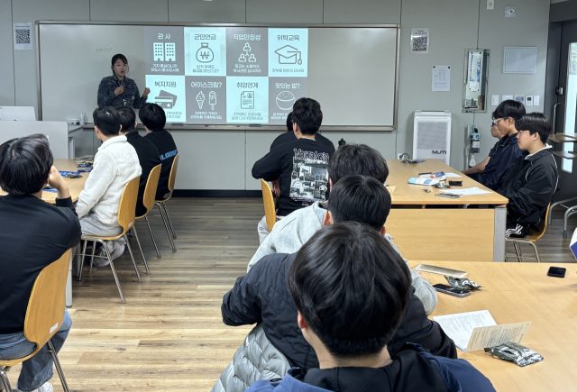 해군 제1함대사령부(이하 1함대) 소속 강원함 장병들이 9일 동해시 북평고등학교를 방문해 학생들을 대상으로 직업으로서의 해군 장교와 부사관에 대해 설명하는 시간을 가졌다.