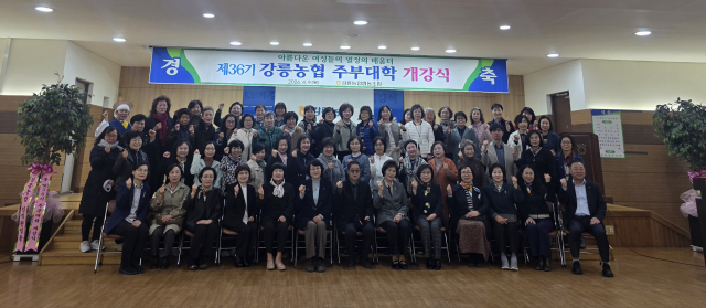 【강릉】강릉농협 제36기 주부대학 개강식이 9일 강릉농협본점 4층 강당에서 최장길 강릉농협조합장, 안선희 강릉주부대학 총동창회장 및 각 기수별 회장, 교육생 등 50여명이 참석한 가운데 열렸다.