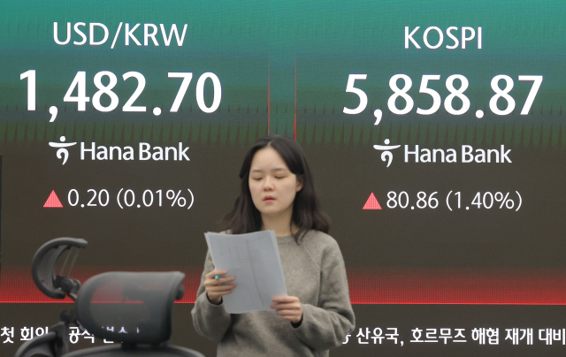코스피는 80.86포인트(1.40%) 오른 5,858.87로 장을 마치며 전날의 하락분(-1.61%)을 대부분 만회했다.