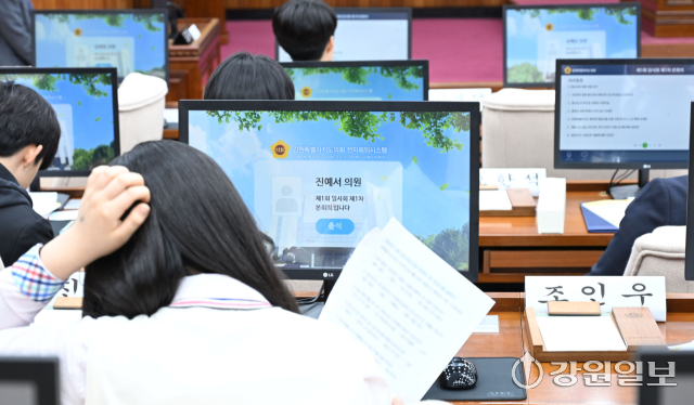 이날 청소년 도의원들은 제1차 임시회 제1차 본회의를 열고 중학교 교복 만족도 조사 실시 조례안, 강원자치도 중학생 대중교통 이용 지원 및 버스 노선 확대 조례안 등의 안건들을 심의·의결했다.