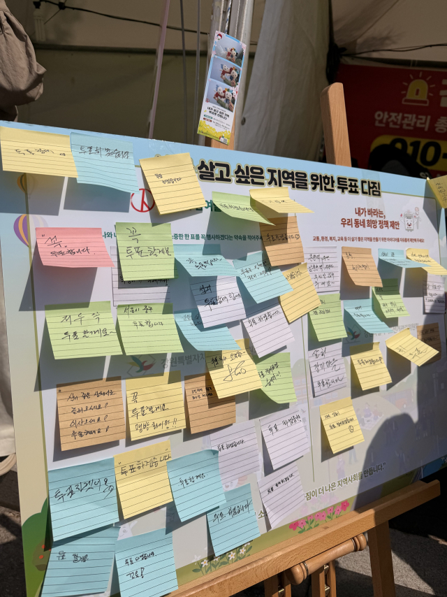 강원특별자치도선거관리위원회(위원장:김재호)는 지난 11일 삼척맹방유채꽃 축제장에서 제9회 전국동시지방선거 투표 참여를 독려하고 투표다짐판 등 이벤트 부스를 운영했다.