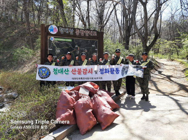 대한민국특전사동지회 속초지회(회장:강승모)는 12일 청대산에서 쓰레기 수거 등 산림정화와 산불감시활동을 벌였다.