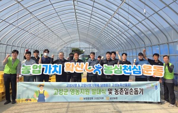 NH농협 고성군지부(지부장:채동완)와 금강농협(조합장:최상균)은 13일 금강농협 농기계수리센터에서 영농철 맞이 ‘고성군 영농지원 발대식 및 농촌일손돕기’ 행사와 농심천심 운동 홍보 캠페인을 실시했다.