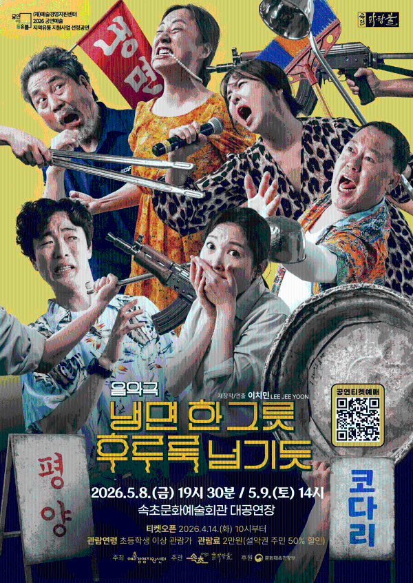 【속초】속초시는 ‘2026 공연예술 지역유통 지원사업’ 선정작인 음악극 ‘냉면 한 그릇 후루룩 넘기듯’을 오는 5월 8일과 9일 속초문화예술회관 대공연장에서 선보인다.