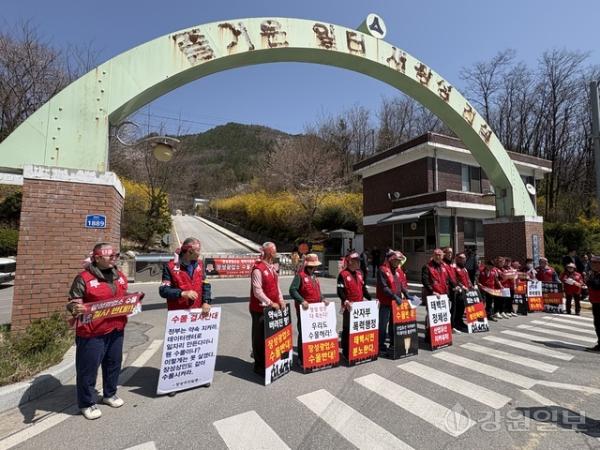 【태백】속보=장성광업소 수몰 반대 투쟁위원회가 주민 동의 없는 지하갱도 수몰을 중단(본보 지난 8일자 14면 보도)하라며 13일 단체행동에 나섰다.