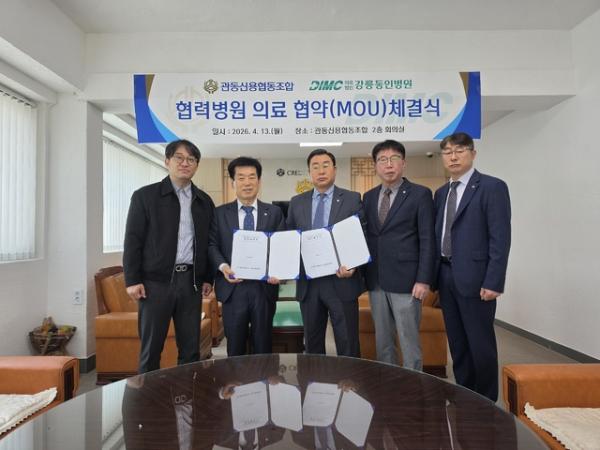관동신협 (이사장:이상혁)과 강릉동인병원 (원장:정태익)은 13일 관동신협 임·직원 및 조합원의 건강검진과 진료시 의료복지 향상을 위한 협력병원 업무협약을 체결했다.