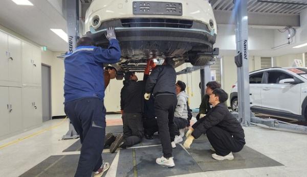 전기차(EV) 구조 이해, 고전압 안전교육, 전력변환장치(EPCU) 점검, 고장코드(DTC) 분석 등 핵심 실무 과목으로 구성됐다. 교육생들은 실제 차량과 장비를 직접 활용한 실습을 통해 현장 적용 가능한 정비 역량을 집중 습득했으며, 실습 중심 교육에 대한 만족도 또한 높게 나타났다.
