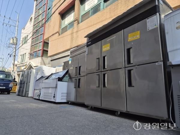 강원지역 자영업자 폐업이 증가하면서 업소용 중고가전 매물이 쏟아지고 있다. 그러나 중고가전 업계마저 경기 불황으로 매입을 꺼리면서 자영업 위기가 연쇄적으로 확산되는 모습이다.