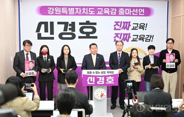 강원교육의 수장인 신경호 교육감도 하루 앞선 13일 재선 도전을 공식화하며 선거전에 뛰어들었다. 그는 “지난 4년의 성과를 바탕으로 강원교육의 전성시대를 완성하겠다”며 지지를 호소하는 한편 전교조와의 대립 구도를 부각하며 교육정책 기조를 재확인했다. 그는 “ ‘미래를 여는 학교, 더 나은 강원교육’이라는 약속을 실천해 왔다”며 “전교조 출신 교육감을 다시 맞이할 것인지, 신경호와 함께 강원교육의 전성시대를 열 것인지 도민의 선택이 중요하다”고 역설했다. 신 교육감은 14일 오전 9시30분 도선관위를 방문해 예비후보 등록을 마친 뒤 충렬탑 참배와 지역 방문 등 현장 행보에 나설 계획이다.