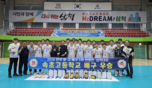 【속초】강원 배구의 자존심 속초고등학교(이하 속초고) 배구부가 2026 한국 중·고 배구 연맹전 삼척대회에서 남고부 우승컵을 들어 올리며 전국 최강자임을 다시 한번 입증했다.