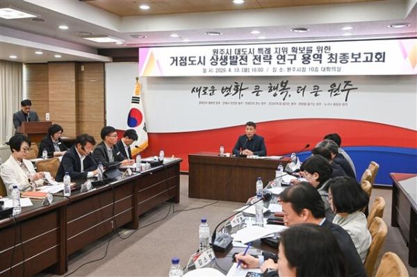 시는 최근 김문기 부시장이 주재한 ‘거점도시 상생발전 전략 연구용역’ 최종보고회를 열고 향후 정책 방향을 구체화했다. 이날 보고회에는 간부 공무원과 연구용역 수행기관 관계자 등이 참석, 그동안의 연구 성과를 공유하고 실질적인 추진 전략을 논의했다.