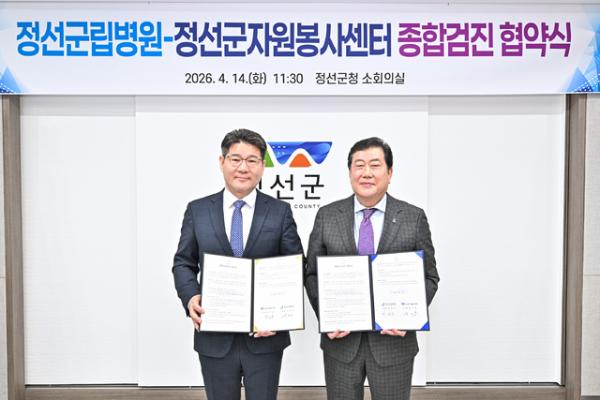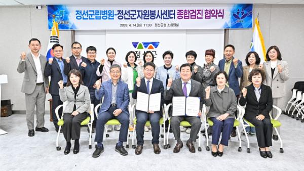 【정선】정선군자원봉사센터와 정선군립병원이 14일 정선군청 소회의실에서 자원봉사자 건강복지 증진과 지역 공공의료 협력 강화를 위한 업무협약을 체결했다.
