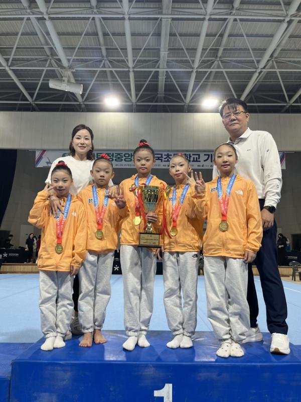이영숙 교장과 서상혁 체육부장, 박경아 지도자가 이끄는 춘천초는 김나은(6년), 고이브(6년), 김나린(4년), 김연우(4년), 진서우(4년)이 출전했다. 개인 성적도 뒤따랐다. 4학년 김나린은 6학년 선수들과 겨뤄 도마 2위에 올랐고, 개인종합에서는 고이브가 6위, 김나은이 7위를 기록했다. 2004 아테네 올림픽 출전 경력을 지닌 박경아 지도자의 지도력이 특히 빛났다.