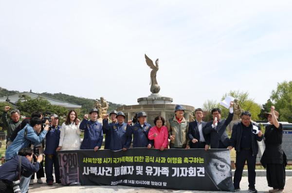 사북항쟁동지회와 유족들은 14일 오전 서울 종로구 청와대 분수대 앞에서 기자회견을 열고 “대통령과 정부는 사북항쟁 국가폭력 피해자들에게 즉각 사과하고 피해 회복 조치와 기념사업 지원 등 진실·화해를위한과거사정리위원회 권고를 즉시 이행하라”고 촉구했다. 이날 기자회견에서 당시 강원 정선 사북읍 동원탄좌 광부였던 피해자는 “포고령으로 2년간 옥고를 치렀지만 지금까지 아무런 결과가 없다”며 “46년이 지나도록 문제가 해결되지 않은 것이 안타깝다. 1980년 이후 지금까지 단 한마디의 사과도 없었다”고 울분을 토했다.