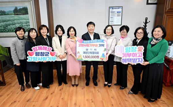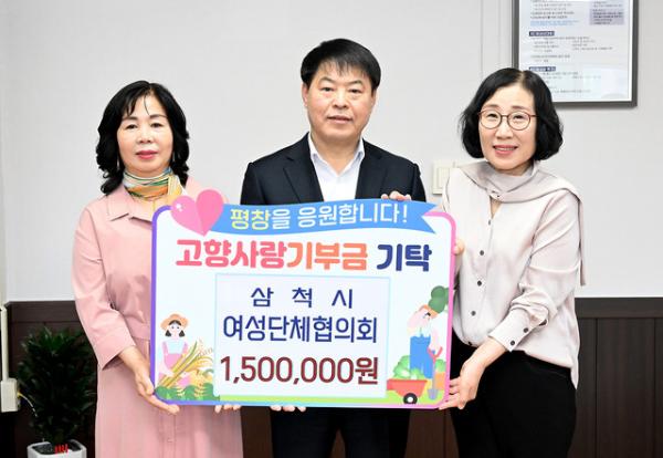 삼척시여성단체협의회(회장:이갑수)는 15일 평창군청을 방문해 임성원 평창군수 직무대행에게 고향사랑기부금 150만원을 전달했다.