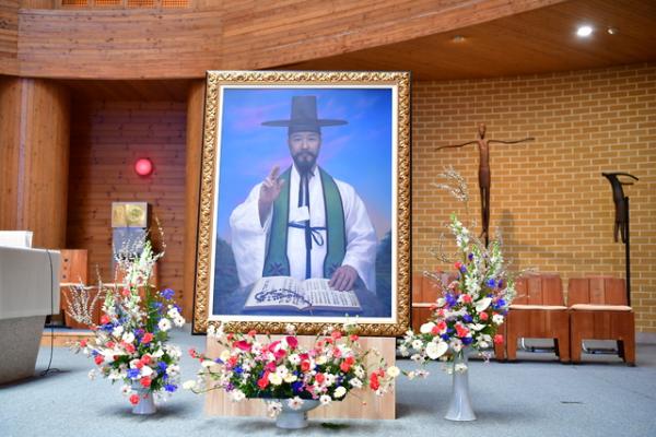 천주교 원주교구가 15일 충북 제천 배론성지에서 최양업 신부의 공식 표준 초상화를 봉헌했다.