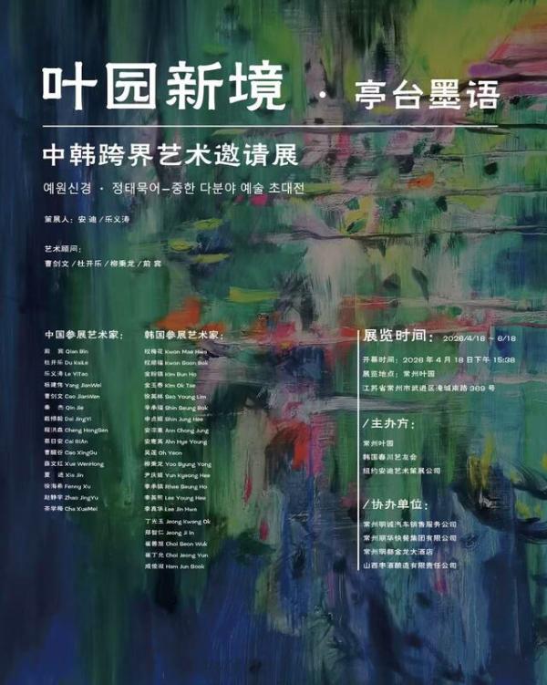 춘천의 예술인 단체 ‘춘천예우회’가 중국 창저우에서 *제3회 엽원신경·정태묵어(叶园新境·亭台墨语) 한·중 예술 국제교류 초대전 을 4월18일부터 6월18일까지 개최한다.