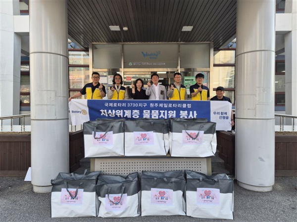 원주제일로타리클럽(회장:최완진)은 지난 14일 판부면행정복지센터를 방문해 지역 내 어려운 이웃을 위해 50만원 상당의 생필품 꾸러미를 전달했다.
