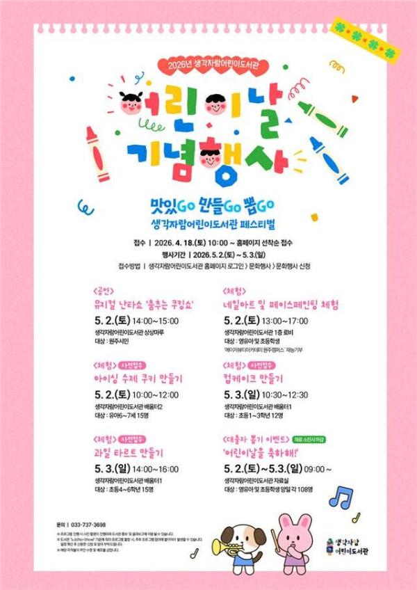 【원주】원주시생각자람어린이도서관은 다음달 2, 3일 ‘맛있GO 만들GO 뽑GO’ 페스티벌을 선보인다.