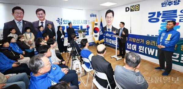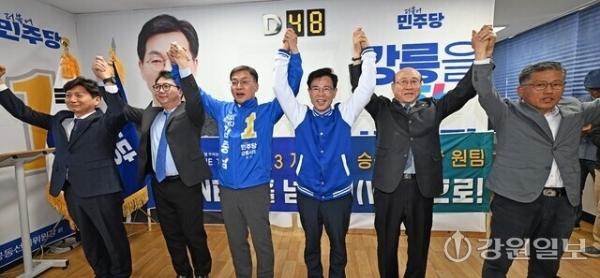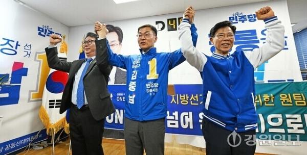 김중남 더불어민주당 강릉시장 예비후보는 16일 강릉시 옥천오거리 선거사무소에서 ‘원팀(One-Team)‘ 출범 기자회견을 갖고 경선 과정에서 경쟁했던 김한근, 김현수 예비후보 등을 공동 선대본부장으로 한 통합 선거대책본부를 구성했다.