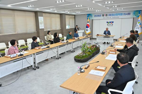 (재)정선장학회는 16일 정선군청 소회의실에서 최승준 이사장을 비롯한 장학회 이사 등이 참석한 가운데 2026년 제1회 (재)정선장학회 이사회를 개최했다.