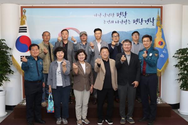 평창경찰서는 평창읍번영회와 16일 회의실에서 평창치안 간담회를 갖고 관내 상인번영회를 대상으로 보이스피싱, 노쇼 사기, 112 신고 요령, 마약 범죄 예방을 주제로 한 범죄예방 교육을 실시했다.