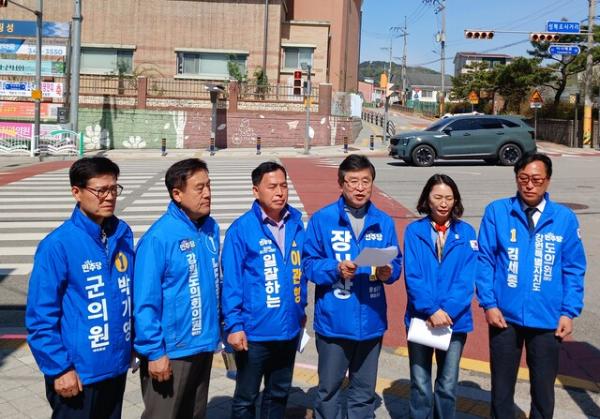 6·3 지방선거에 출마하는 더불어민주당 장신상 횡성군수 예비후보는 16일 횡성 성북초교 앞에서 기자회견을 갖고 교통사고 없는 도시 횡성을 위한 공약을 제시했다.