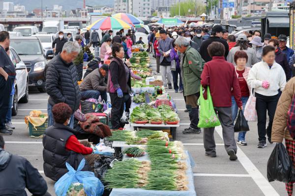 개장 첫날 새벽시장은 손님맞이에 분주한 농업인과 당일 수확한 신선한 농산물 등을 구입하려는 시민 등 특유의 활기가 감돌았다. 봄나물, 과일, 감자, 대파 등 다양한 상품이 놓인 좌판마다 가격을 묻거나 흥정을 시도하고 물건을 고르는 손님으로 분주했다.
