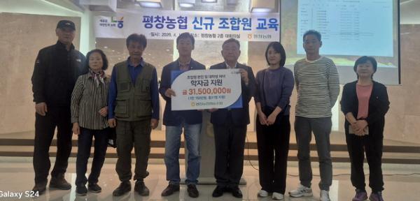 【평창】평창농협(조합장:이만재)은 지난 17일 평창농협 2층 대회의실에서 신규 조합원을 대상으로 ‘찾아가는 신규 조합원 교육’을 열고 조합원 본인 및 자녀를 위한 학자금 지원 전달식을 함께 진행했다.