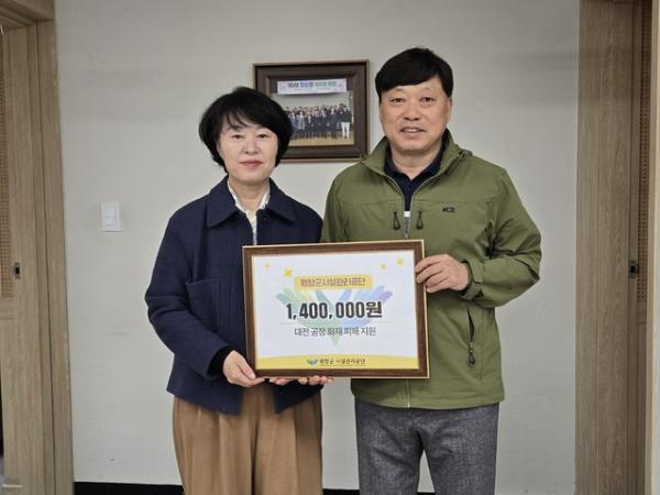 【평창】평창군시설관리공단(이사장:최순철)은 대전 자동차부품 공장 화재 피해자 지원과 지역사회의 조속한 일상 회복을 위해 임직원들이 자발적으로 모은 성금 140만원을 대한적십자사를 통해 전달했다고 19일 밝혔다.