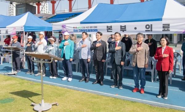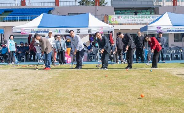 고성, 속초, 양양, 인제 4개 시·군이 참여하는 제3회 설악권 그라운드골프대회가 지난 18일 고성종합운동장에서 이양수 국회의원과 엄윤순 강원특별자치도의원, 김택진 고성군 관광경제국장, 용광열 고성군의장, 곽상규 고성군체육회장, 홍순흥 고성군그라운드골프협회장 등 240여명이 참가한 가운데 열렸다.