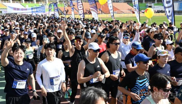 창간 81주년을 맞은 강원일보사가 주최하고 강원특별자치도육상연맹이 주관한 ‘2026 함기용 세계제패기념 제23회 춘천호반마라톤대회’가 18일 춘천 송암스포츠타운에서 6,000여명의 마라토너와 가족, 시민 등이 참가한 가운데 역대 최대규모로 치러졌다. 한편 이날 1992 바르셀로나 올림픽 금메달리스트 황영조 감독이 5㎞ 코스에 직접 참가해 시민 러너들과 함께 호흡하며 대회의 의미를 더했다.