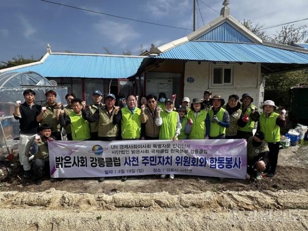 강릉시 사천면 주민자치위원회(위원장: 최영복)는 밝은사회국제클럽강릉본부 회원들과 함께 19일 지역의 열악한 주거 환경에서 홀로 생활하는 어르신을 위한 훈훈한 집수리 봉사활동을 펼쳤다.