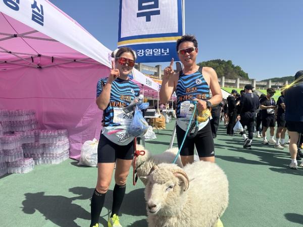 ◇양들과 함께 대회장을 찾은 이색 참가자 눈길. 하얀목장을 운영하는 ‘양삼촌’ 이상민(45)씨와 ’양언니’ 장미화(44)씨는 이날 ‘몽돌이’, ‘몽실이’와 함께 현장을 찾아 참가자들과 기념사진을 찍으며 인기를 끌어. 푸근한 양 두 마리와 함께 선 이들 주변으로 시민들의 발길이 이어지며 대회장 한복판이 작은 포토존으로 변신. 참가자들 사이에서는 “양들과 함께 있는 모습만 봐도 힐링된다”는 반응이 이어지며 웃음 자아내.